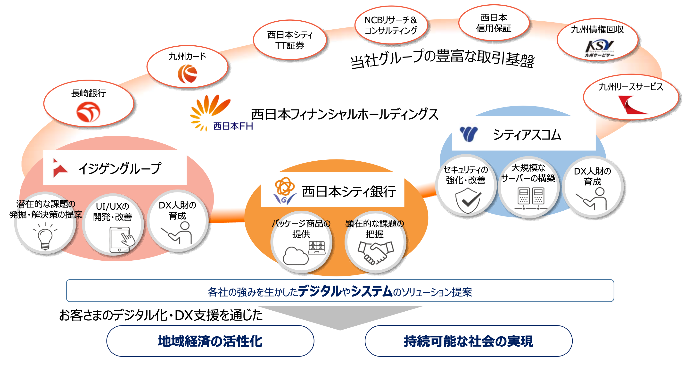 数多くの企業との取引基盤を有する西日本FHグループとの連携を強化し、他に類を見ない地域金融グループへと進化することで、より幅広いソリューションを提供することが可能となり、地方で課題を抱えている中小企業さまの課題解決を1社でも多く実現し、両社の業容の拡大・企業価値の向上につながるとの結論に至り、今回の株式譲渡・グループ会社化となりました。