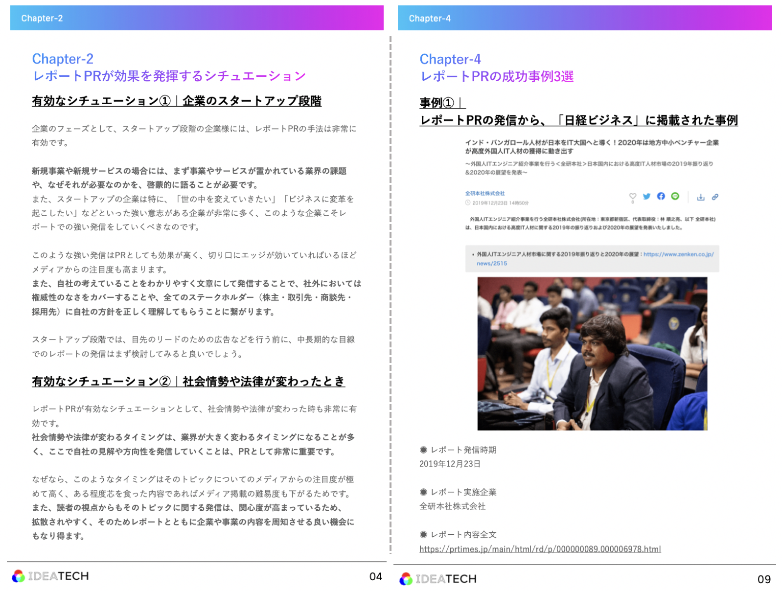 ファクトに基づいたコンテンツ開発とマーケティング支援を行う、株式会社IDEATECH(本社:東京都港区、代表取締役:石川友夫)は、広報・マーケティングご担当者様のPRに活用できる「レポート」への理解促進と支援を目的にした、「プロのPRコンサルタントが教える『レポートPR』パーフェクトガイド」を無料公開しました。