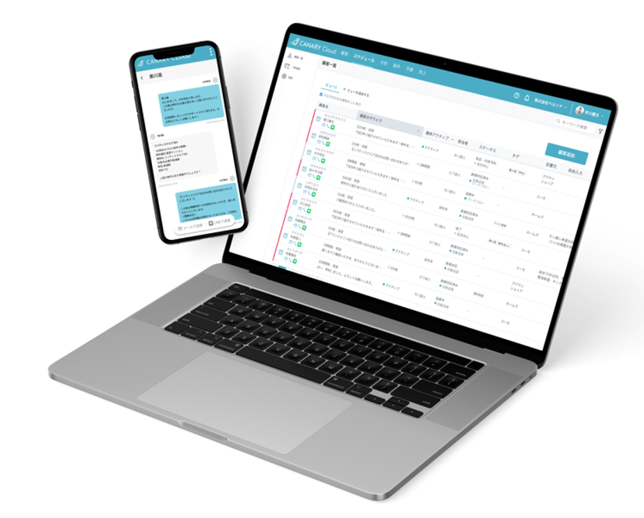 「カナリークラウド」は、不動産業務に特化したSaaSです。顧客管理(CRM)の機能を中心に、高機能ながらどんな方でも直感的に使用可能なシンプルで分かりやすいUIに大きな強みを持っています。