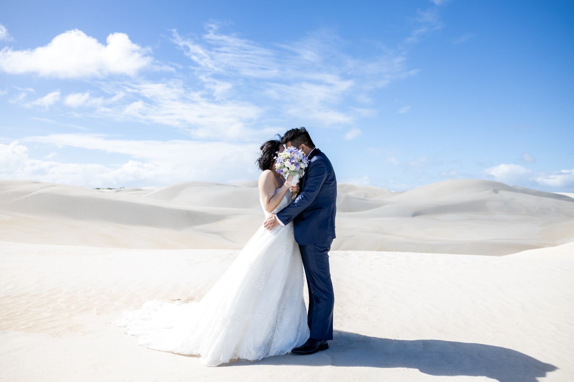 HISでは、近代的な都市開発が進む「パース」市内をはじめ、コロニアル調の街並みが人気の歴史ある港町「フリーマントル」、月面のような異世界風景が広がる「ピナクルズ」や、白い砂と青い空のコントラストが美しい「ランセリン砂丘」など、「パース近郊の多彩なロケーションでのフォトプランを展開しています。ドレスレンタルやヘアメイク、日本語対応スタッフによる撮影が含まれており、海外でも安心して二人の特別な1日を残すことができます。