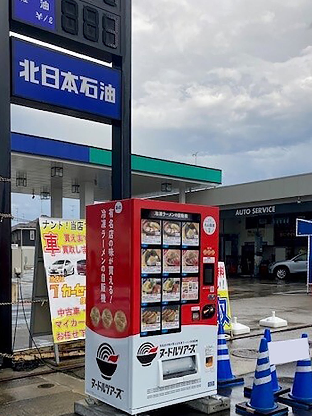 給油や洗車だけじゃない!北日本石油㈱運営の青森県八戸市のガソリンスタンドにて、冷凍ラーメン自販機『ヌードルツアーズ』販売開始
