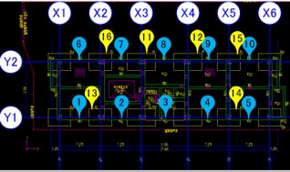 CADデータやPDFから素早く検査用の配筋断面図を切り出し。通り芯を作成して検査箇所にピンを立てることが でき、そこに切り出した断面図を紐づけることで、検査用のデジタル黒板を自動で生成できます。従来時間を費やして行っていた検査準備が劇的に効率化されます。