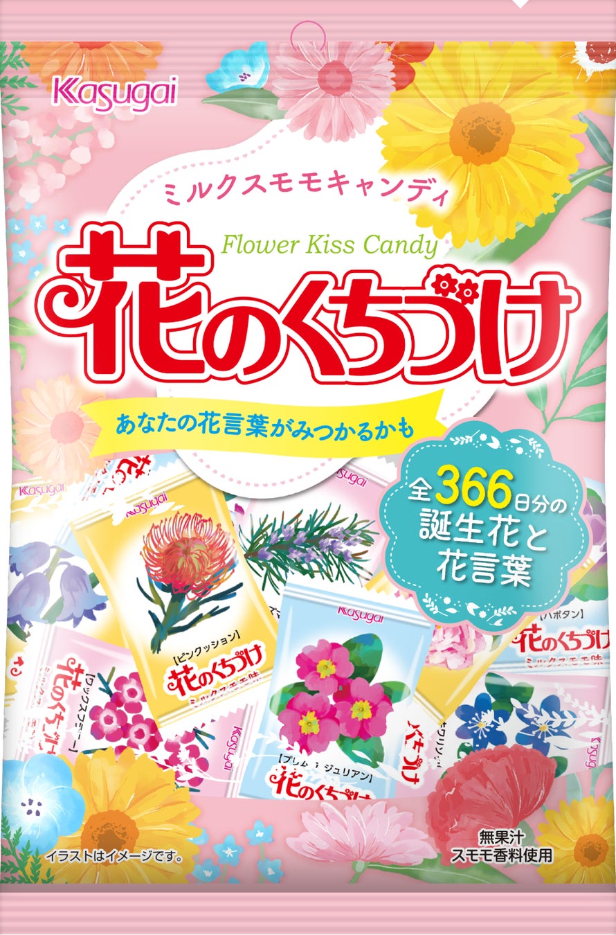 可愛らしいピンク色の見た目と、うるう年を含む全366日の誕生花と花言葉が入った個包装パッケージが特徴で、2024年には発売40周年を迎えるロングセラー商品です。