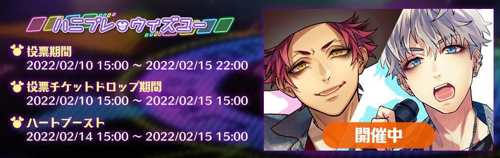 「ハニプレ・ウィズユー」は、お題に合わせた投票を行い、投票数の多い投票対象が今後のハニプレ内で実装されるイベントとなっております。