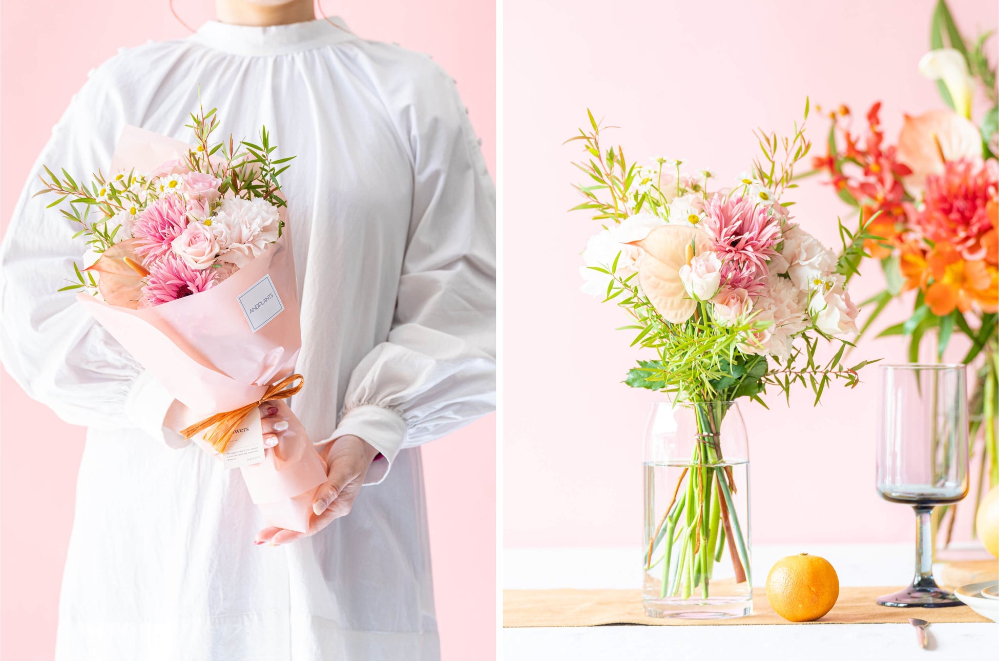 アンドプランツが提案するお花は趣の異なるデザインが特徴です。定番のカーネーション、バラはもちろんのこと、ダリアやアンスリウムなどの母の日には珍しいお花を用いてよりモードに、洗練した組み合わせを意識し、受け取った時の感動や、印象に残るような華やかさを意識しました。