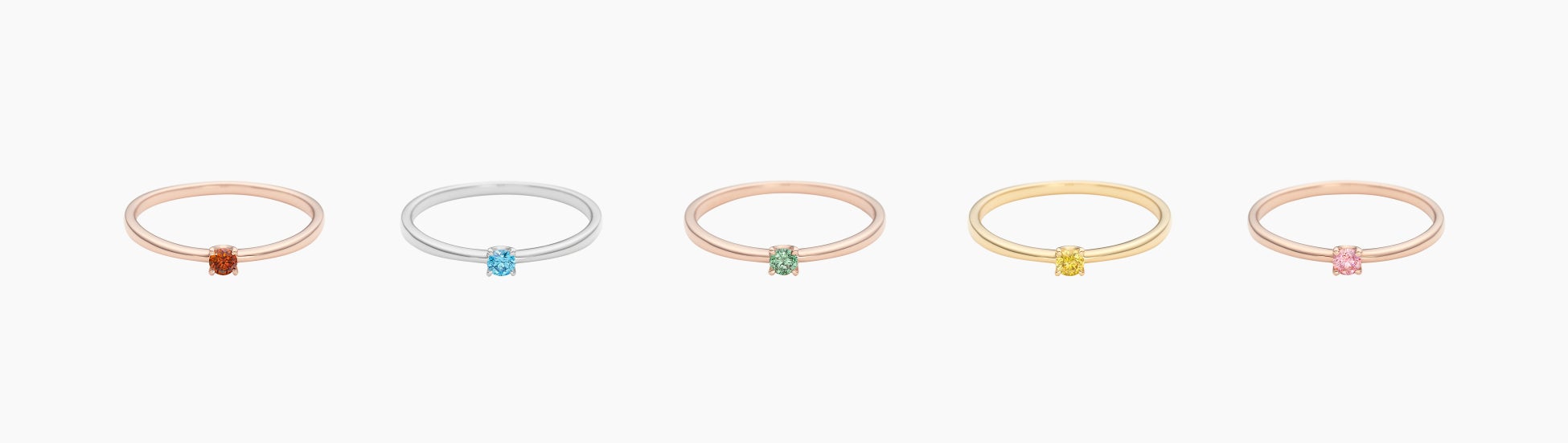 シンプルでミニマルなデザインに落とし込むことで、カラーラボグロウンダイヤモンドジュエリー初心者の方々にも手に取っていただきやすく、レイヤードを楽しむことも。また、オーダーでは店頭には無い色の組み合わせのデザインも可能です。大地を傷つけることなく生まれてきたラボグロウンダイヤモンドの未来につながるサスティナブルな輝きと、その抜群の美しさを引き出すため細部にまでこだわった繊細なつくりが生み出す華やかなカラーラボグロウンダイヤモンドジュエリーの新作アイテムを、この機会にぜひご覧ください。