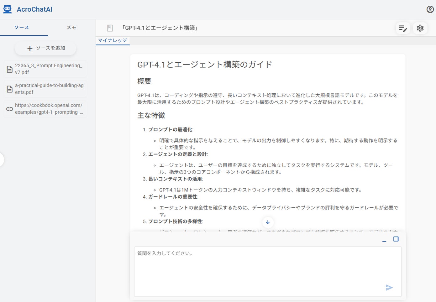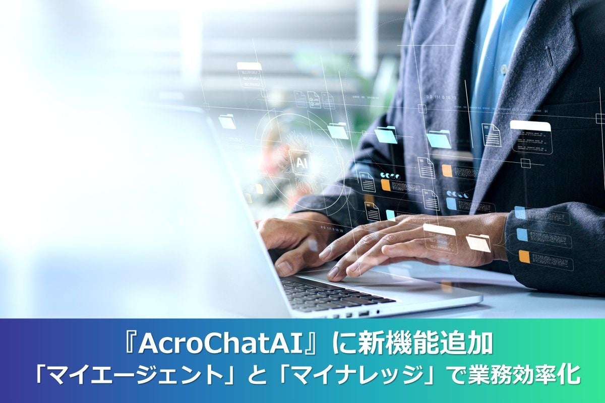 アクロクエストテクノロジー株式会社(本社:神奈川県横浜市・代表取締役:新免流、以下、アクロクエスト)は、エンタープライズ向け生成AIアシスタント『AcroChatAI』において、AIエージェントを簡単に作成・実行できる「マイエージェント」機能と、特定文書をAIが理解し活用する「マイナレッジ」機能の提供を開始いたしました。