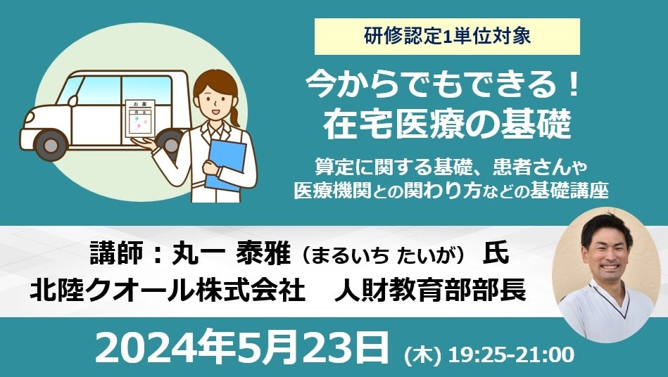 株式会社グッドサイクルシステム(本社:東京都港区、代表取締役会長:大石 憲司)は、薬局経営者・薬剤師向けにオンラインセミナーを無料で開催します。今回は、在宅医療の基礎について、北陸クオール株式会社 人財教育部部長 丸一 泰雅(まるいち たいが)氏にご講演いただきます。