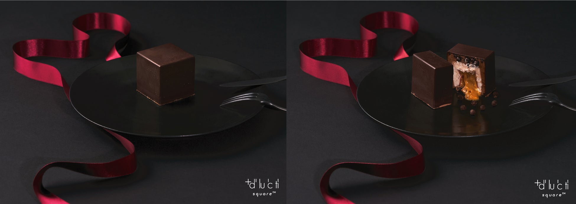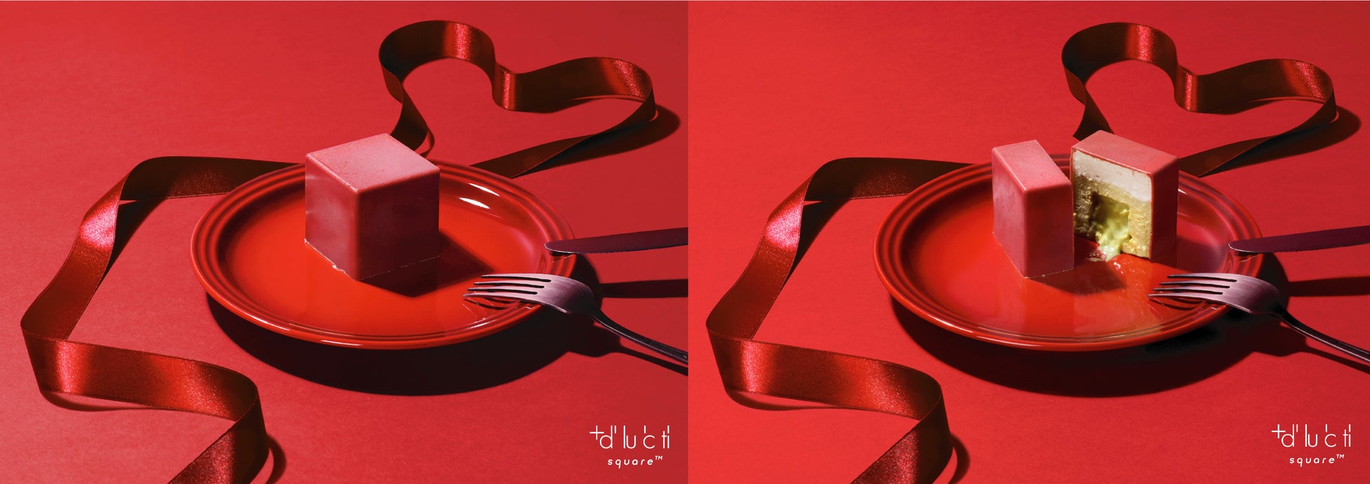 大人気スイーツ「なんとかスクエア」の第6弾「VIP」は、世界中の一流シェフが使用する上質なチョコレートを製造するヴァローナ社などの高級チョコレートをふんだんに使用し、外側はダークのチョコレート、中にはミルクとビターの2種類を使ったチョコレートムースとサクサク食感のパールクラッカンを。さらに、ルビーチョコレートのムースといちごチョコレートでコーティングした、いちごキャラメルがとろっと中から溢れ出します。これまでの「なんとかスクエア」とは違った高級感のある渋谷系大人スイーツとなっております。