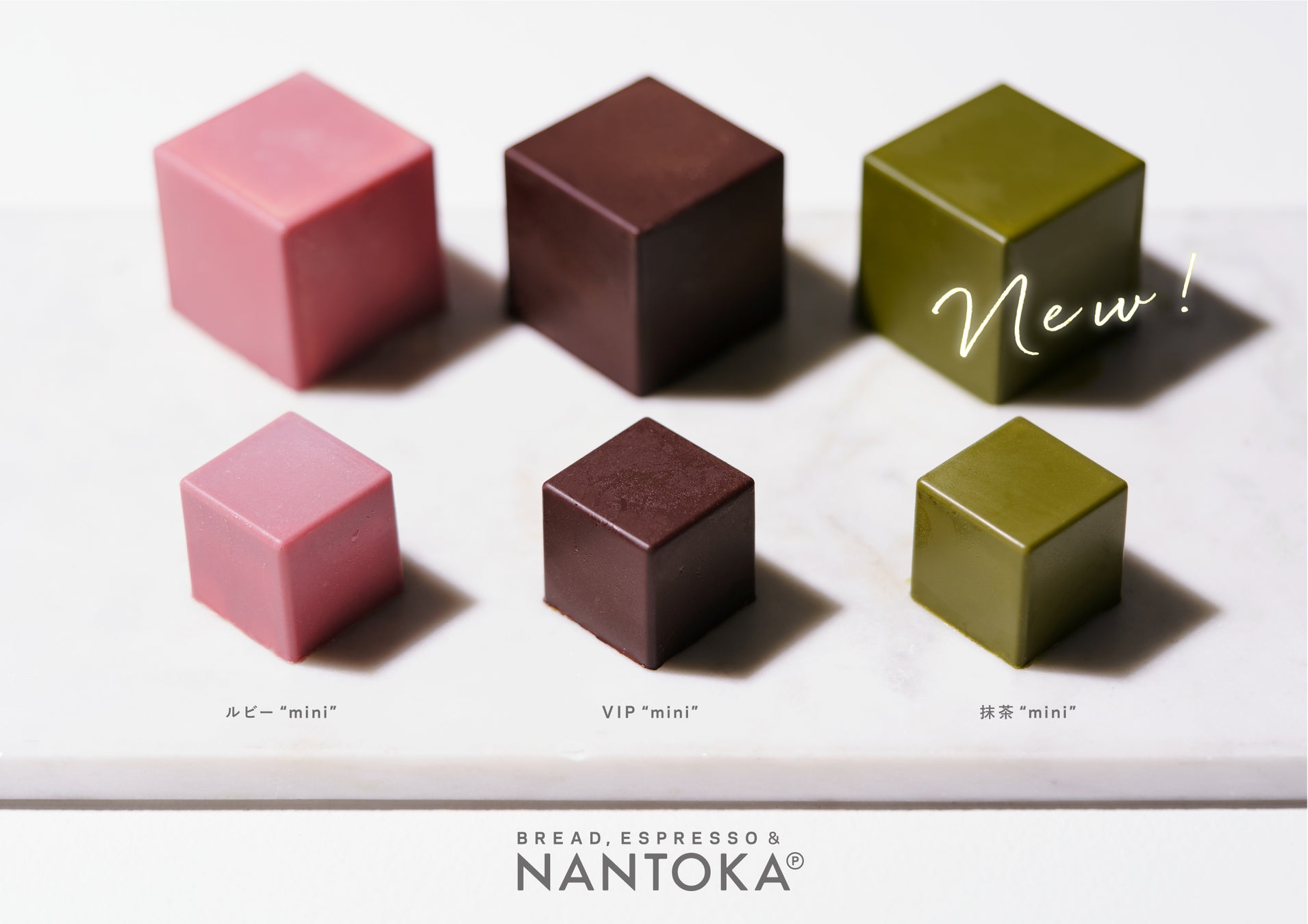 いろんな種類を1度に味わいたい!というお客様の声からこの度、スクエア「mini」の発売が決定いたしました。今回はレギュラーメニューの「ルビー」と「抹茶」に加えて、新発売の「VIP」を含めた3種類でご用意しております。ちょっとしたお手土産や、ご自身のご褒美にもピッタリのサイズとなっておりますので、ぜひお試しくださいませ。