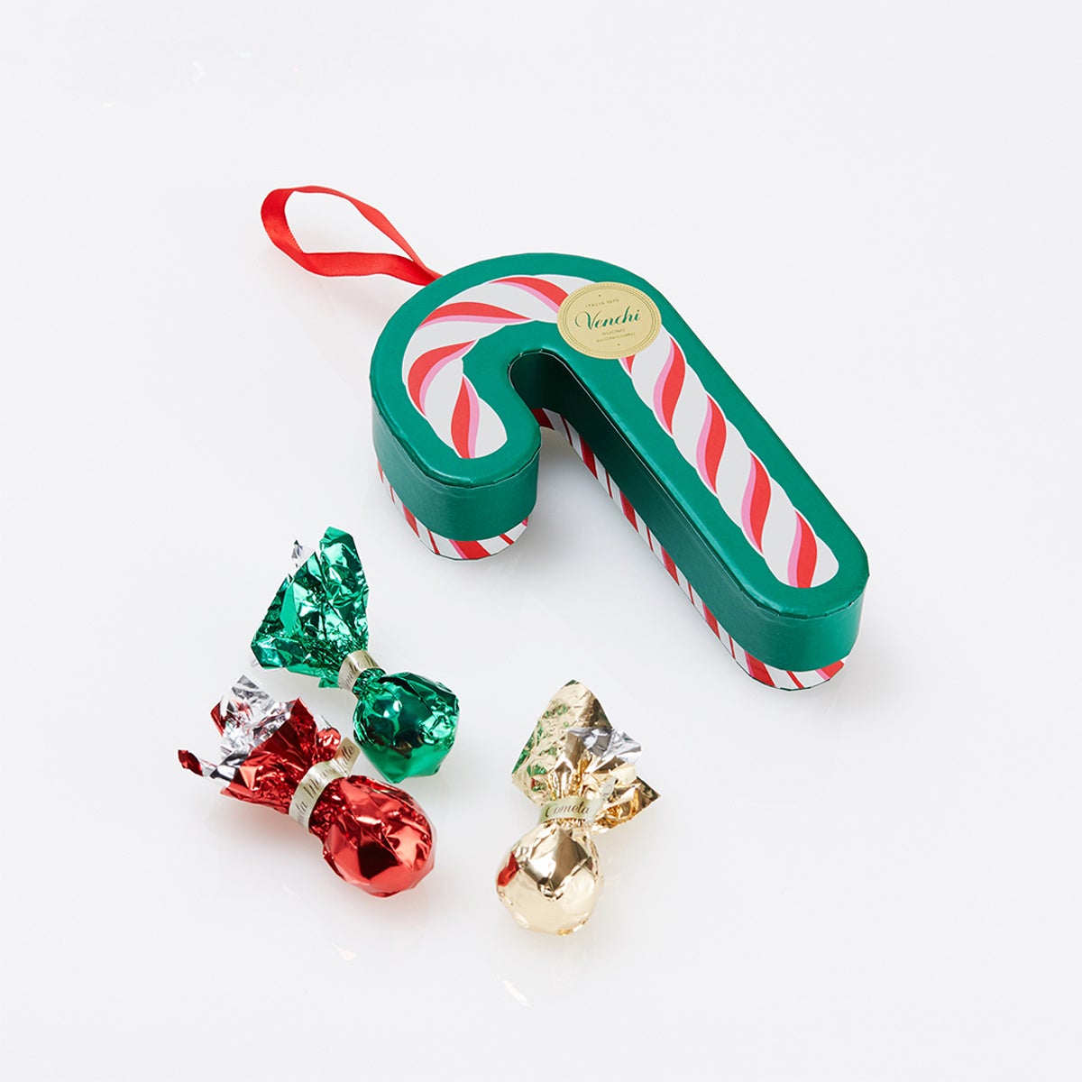 キャンディーケイン型の紙製ボックスのオーナメント。クリスマスツリーに飾ってお楽しみいただけます。
