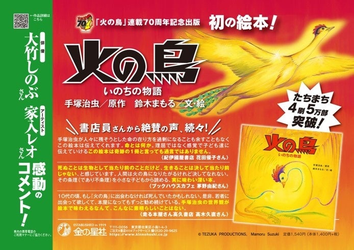 2024年4月に発売された絵本『火の鳥 いのちの物語』。テレビ・新聞で続々取り上げられ話題沸騰! このたび4刷重版累計発行部数5万部となりました。