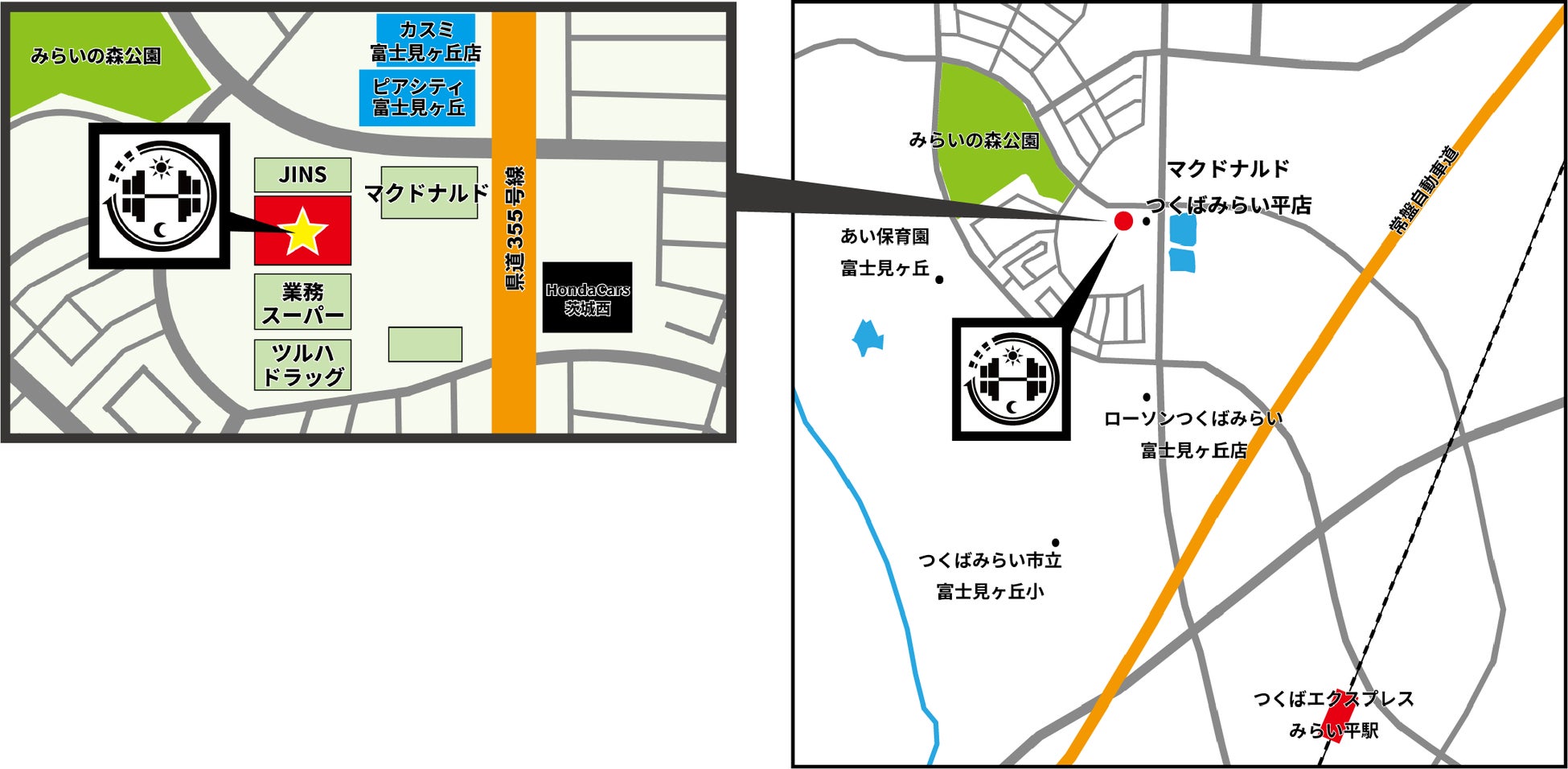 ( つくばエクスプレス / みらい平駅より 徒歩22分、車で5分 ※無料駐車場160台以上 )