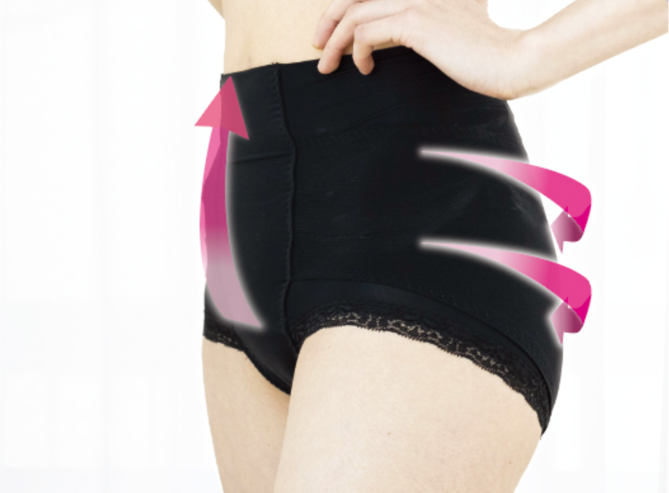 パワーネットが身生地と一体化しているので、面ファスナーやホックなどの装着が必要なく、通常の下着として着用できる、ショーツタイプの骨盤底筋サポート下着です。