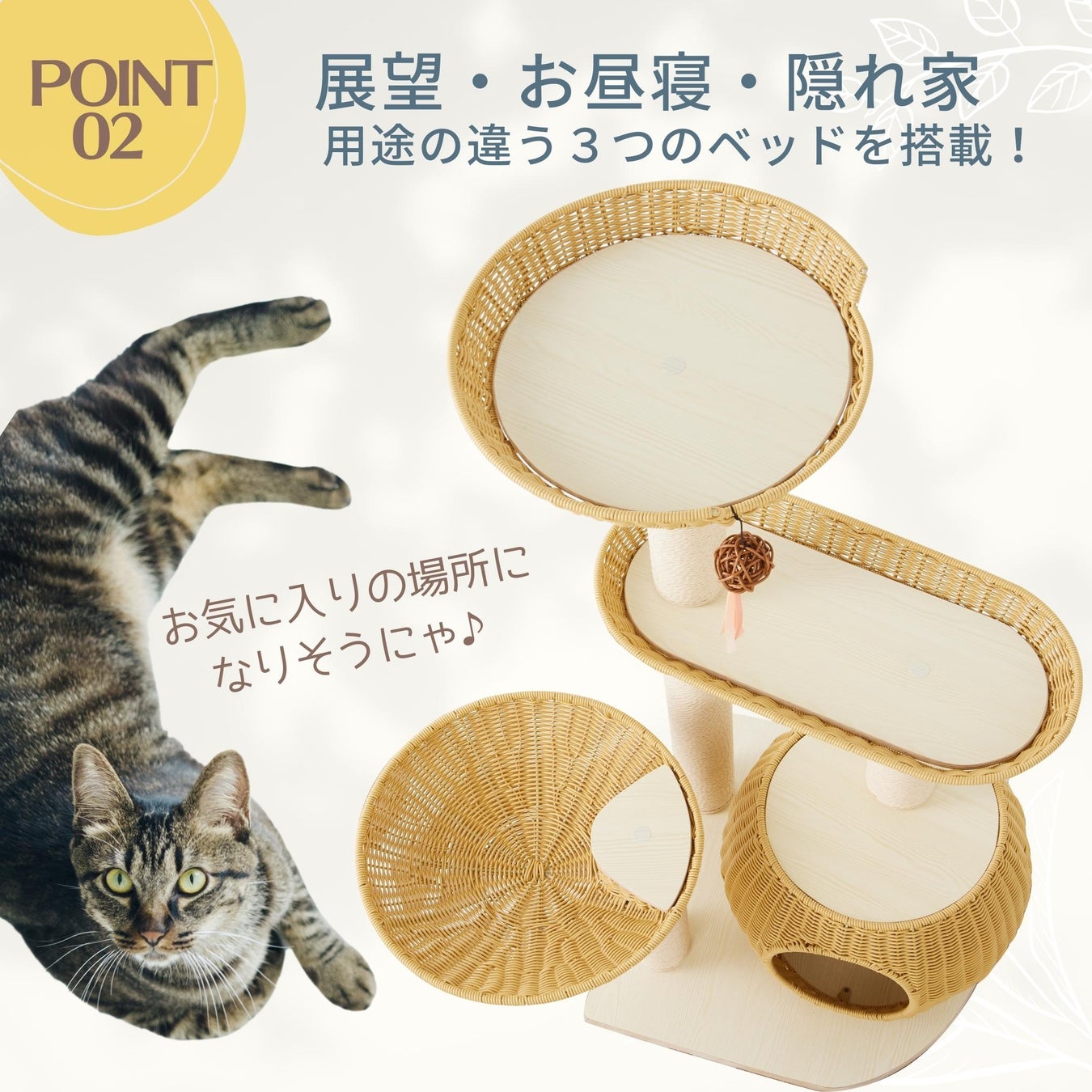 「洗えておしゃれなネコ家具」SUMIKAの”ratanto!シリーズ”は、南国リゾートを想起させるおしゃれなラインナップも魅力。そんなratanto!シリーズより、待望の小型キャットタワーが登場いたしました!