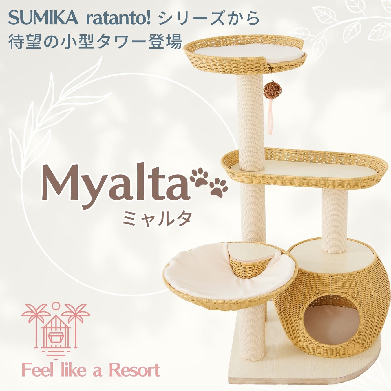 SUMIKA ratanto!シリーズ 人工ラタン製 小型キャットタワー『Myalta ミャルタ』は、EC限定販売です。現在は、SUMIKA公式オンラインショップ、楽天市場、Yahoo!ショッピングにて予約販売をしております。