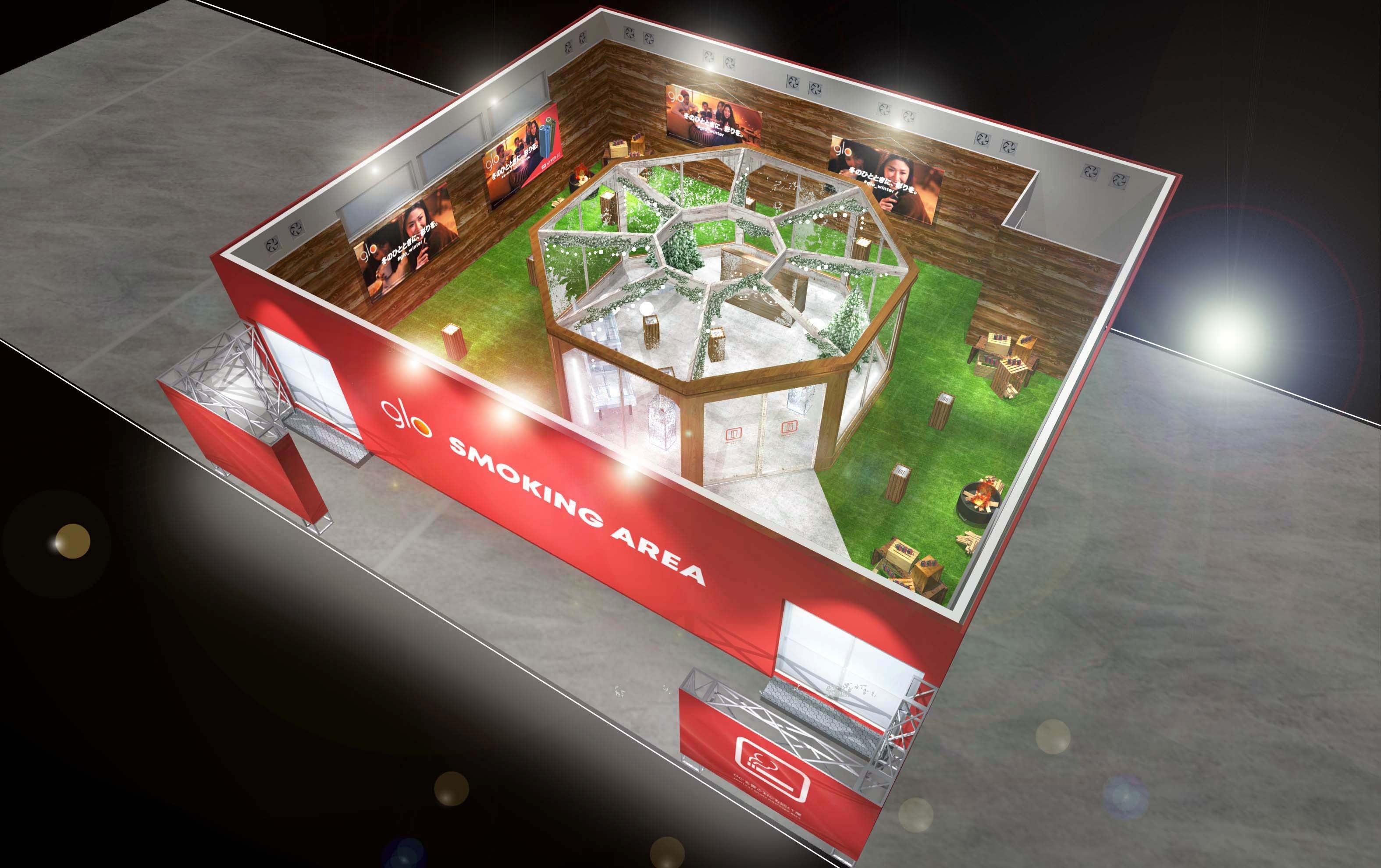今冬のglo(TM)ブランドキャンペーンコンセプト「冬のひとときに、彩りを。」のもと、冬のグランピングとスノードームをイメージしてデザインされた喫煙ブースでは、紙巻たばこおよび加熱式たばこを喫煙いただけるほか、glo(TM)(グロー)の最新加熱式たばこ専用デバイス「glo(TM) hyper X2」(グロー・ハイパー・エックス・ツー)をお試しいただけます。