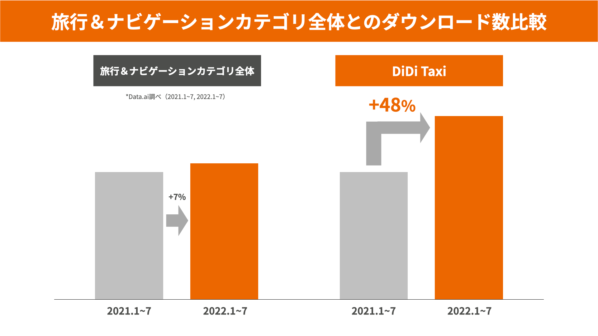 2022年1月〜7月の合計ダウンロード数は、前年同期比+48%となり、同じ「旅行&ナビゲーションカテゴリ全体」のアプリと比較しても大きくダウンロード数が伸長する結果となりました。