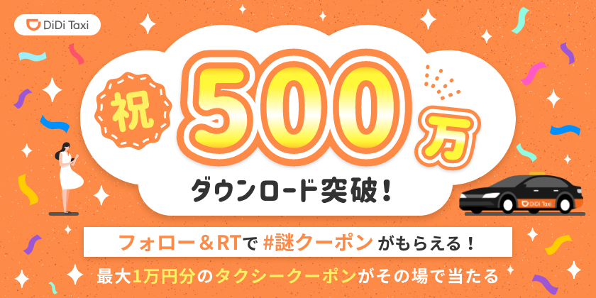 タクシーアプリ「DiDi」累計500万ダウンロード突破記念! Twitterフォロー&RTキャンペーンを実施