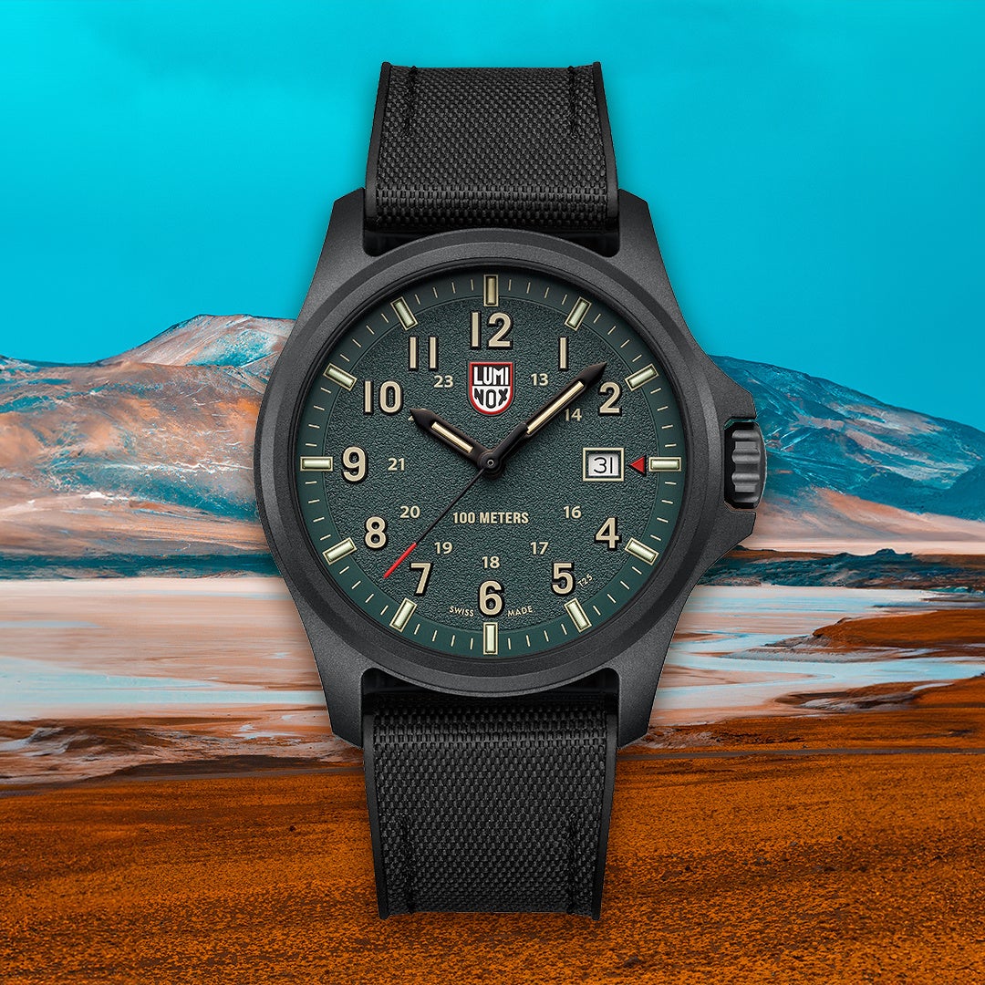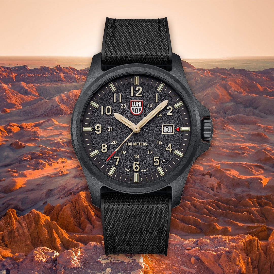 チリのアタカマ砂漠からインスピレーションを得たこのシリーズは、砂漠の地形と険しい風景を思い起こさせる風合いとなっており、過酷な環境での探検に対するルミノックスの取組みと彼らの冒険精神が込められています。