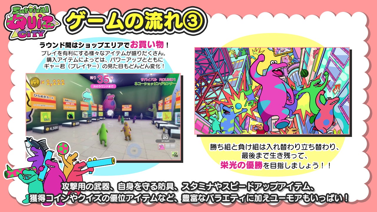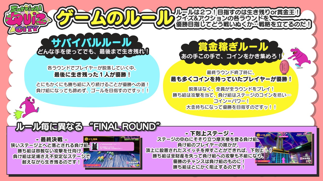 - 大人数×オンラインで楽しむサバイバルクイズアクション『Survival Quiz CITY』