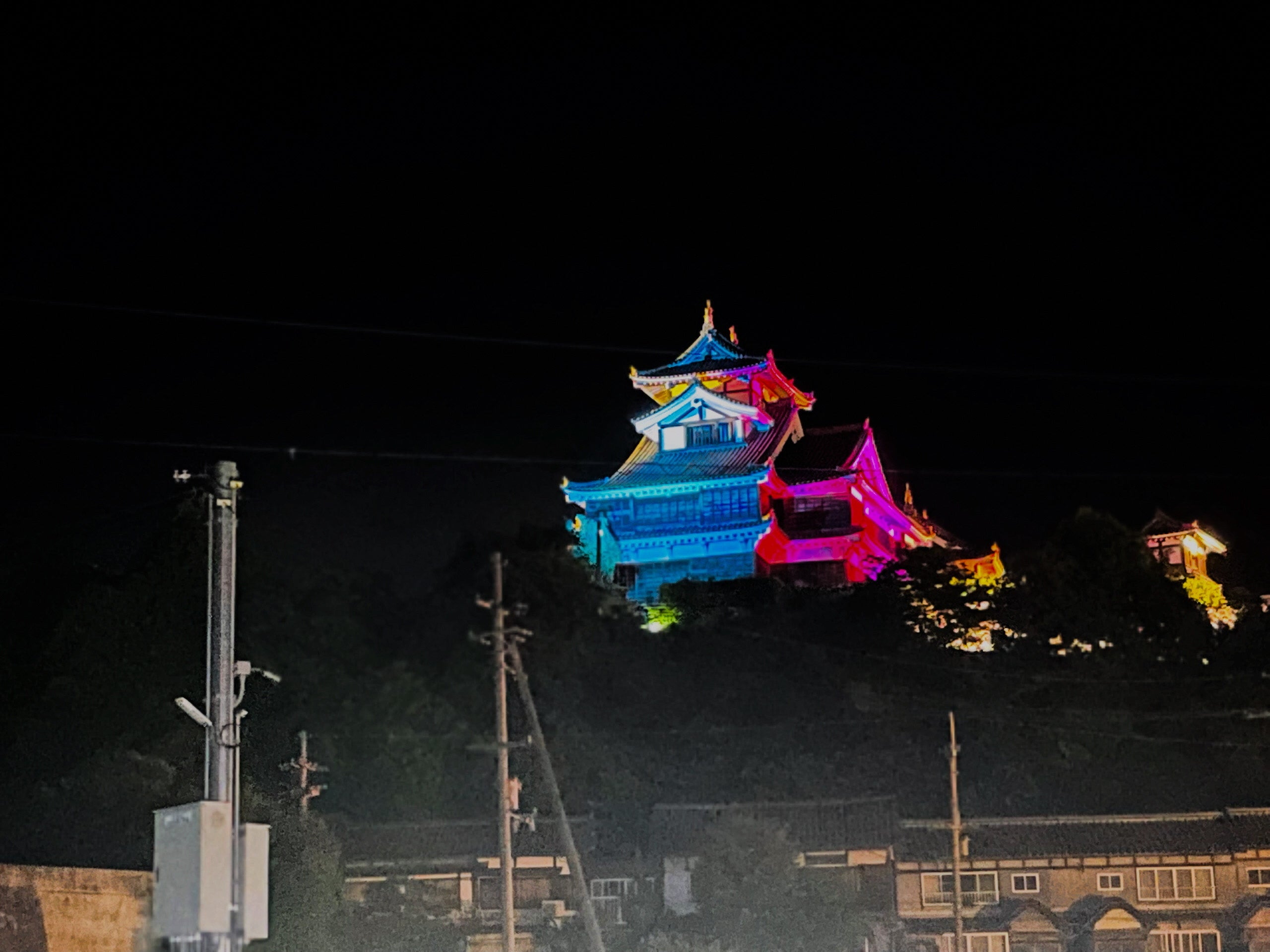 福知山城を多様な性の象徴として使用されているレインボー(6色)色にライトアップ。