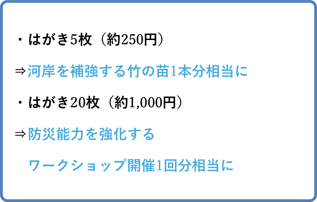 ◆ はがき1枚からできる社会貢献アクション。年賀状5枚で、防災・水害対策に繋がる植樹1本相当に