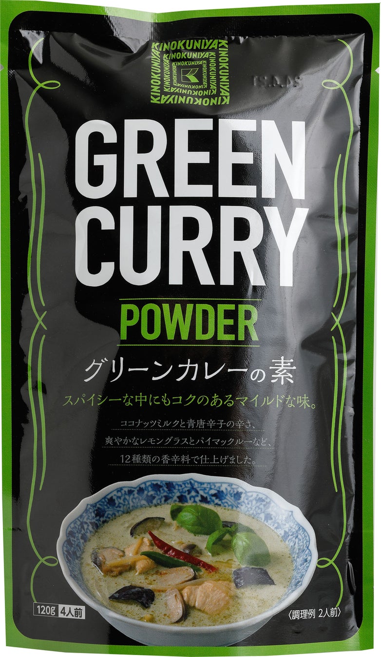 ココナッツミルクと青唐辛子の辛さ、爽やかなレモングラスとパイマックルーなど12種類の香辛料で仕上げた、粉末カレールーです。