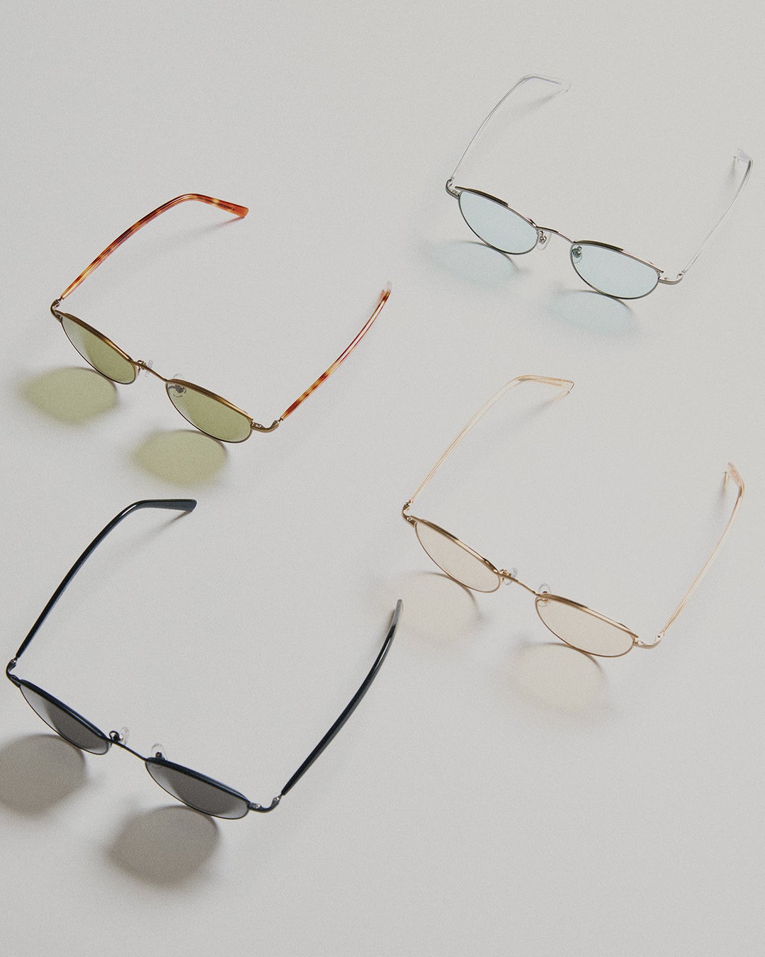 ブラックとマルチには抜け感のあるクリアレンズを、ベージュとカーキには目元を優しく彩るライトカラーレンズを採用。全4色展開。