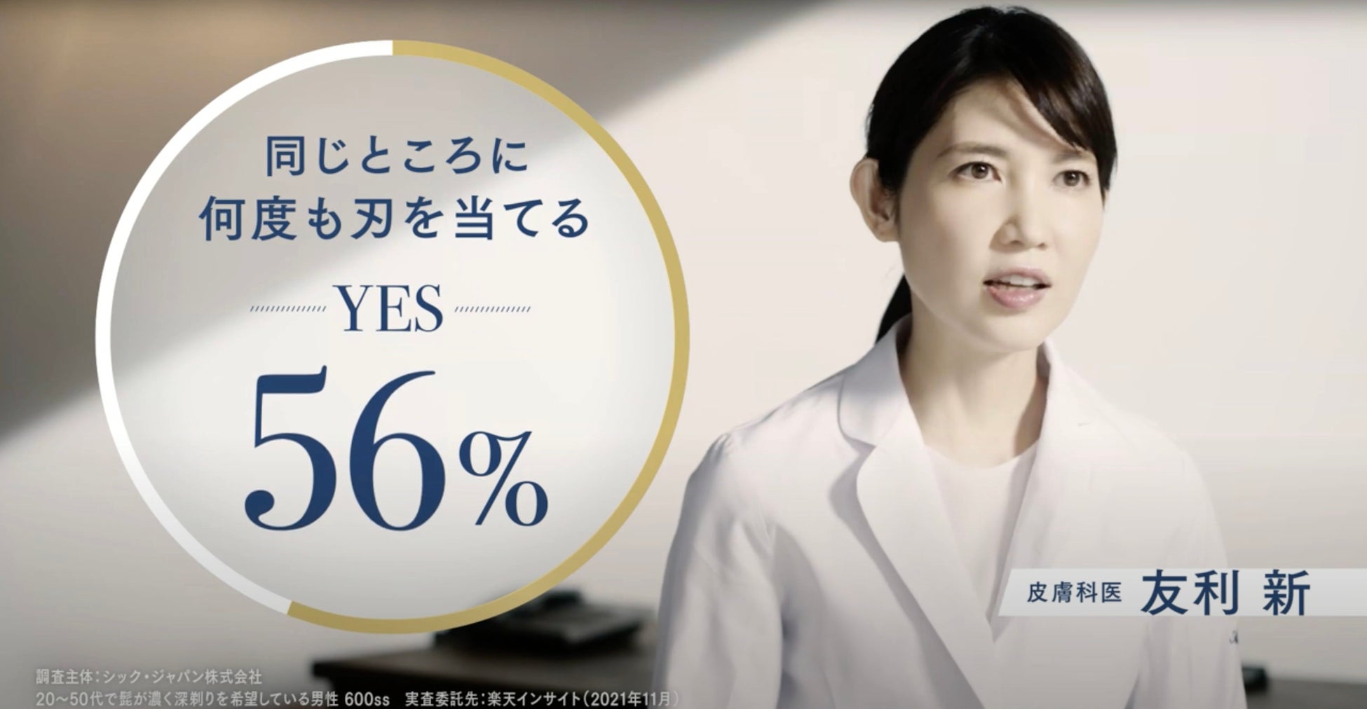 「クアトロシリーズ」は、刃の鋭さと切れ味の持続性が特長であり、何度も刃を当てたり、強く肌に当てる必要がないため、深剃りをしても肌を傷つけにくいのが最大の“強み”です。今回公開するWEB動画では、医師の友利 新(ともり あらた)先生が登場。肌荒れに悩む男性の相談を受けて「実は56%の人が何度も同じところに刃を当てている」事実(※2)を明らかに。「深剃りに対する誤解、そしてなぜクアトロシリーズの深剃りは肌を傷つけにくいのか」を解説してくれる内容になっています。WEB動画は15秒タイプのほか、30秒タイプも同時公開します。