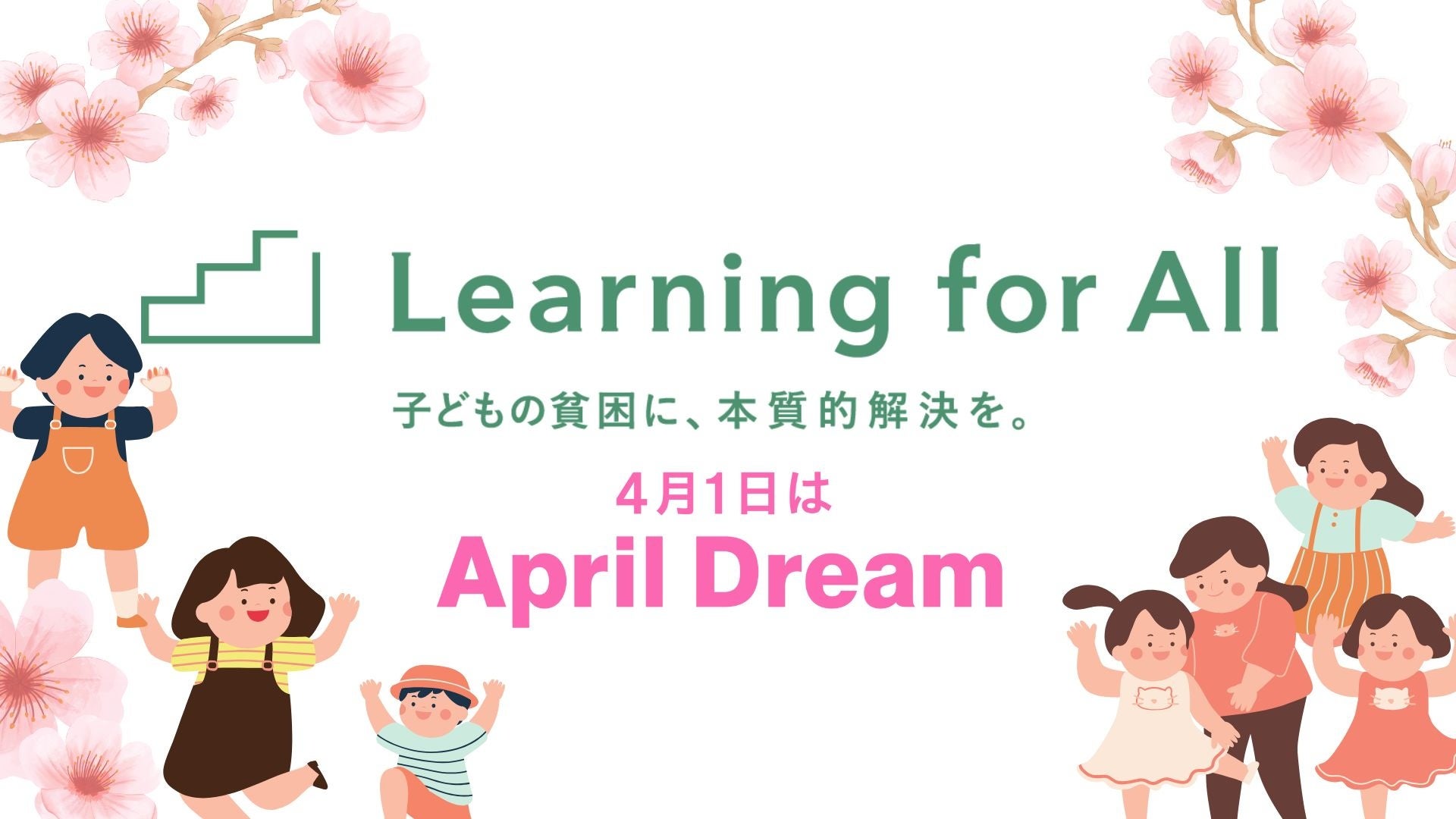 当社は、4月1日を夢を発信する日にしようとするApril Dreamに賛同しています。このプレスリリースは「Learning for All 」の夢です。
