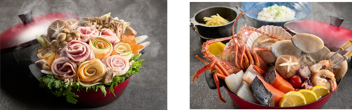 鍋料理は、11月12日(土)から提供開始した2種類「房総ジビエのブーケ二色鍋」と「海鮮尽くしチーズ鍋」のいずれかを選択いただきます。お食事後には、焚火ガーデンで温まりながら、ホットワインを片手に澄み切った冬の夜空を眺める星空観賞をお楽しみいただけます。