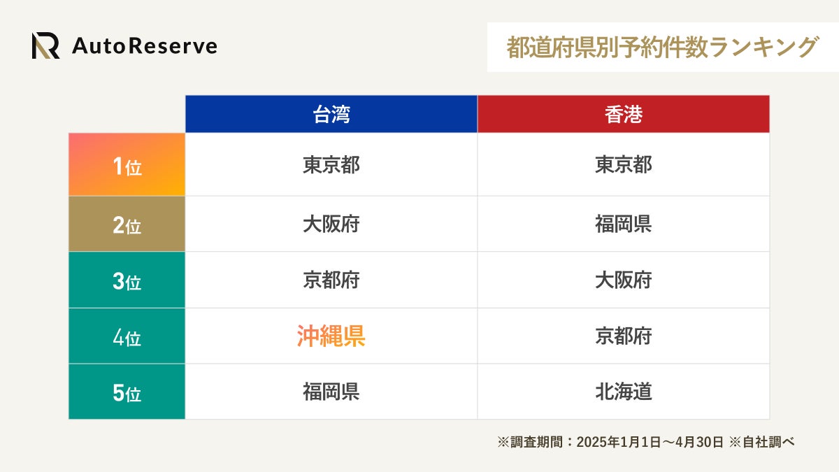 2025年4月の発表(※1)では、訪日外客数において台湾が3位、香港が4位となっており、訪日需要が引き続き高いことがわかります。