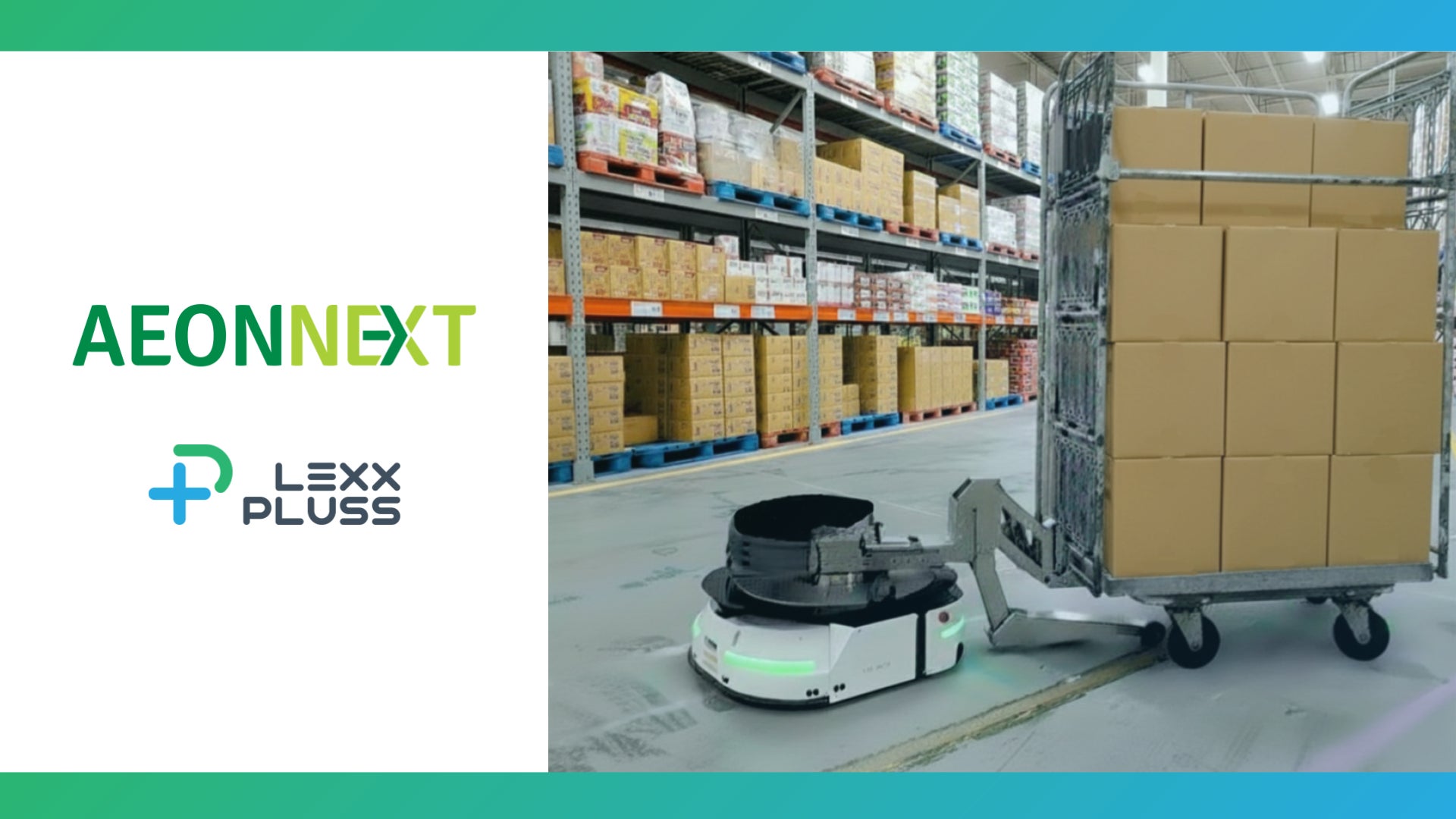 イオンネクスト株式会社(本社:千葉県千葉市、代表取締役社長:バラット・ルパーニ、以下「イオンネクスト」)が、2026年開業予定の八王子顧客フルフィルメントセンター(以下「八王子CFC」)において、株式会社LexxPluss(本社:神奈川県川崎市、代表取締役:阿蘓将也)の自動搬送ロボット「Lexx500」および台車脱着インターフェース「LexxTug」を導入することが決定しました。LexxTugで八王子CFC冷蔵帯での台車搬送を効率化することで、八王子CFCの供給能力向上を実現します。本導入ではLexxPlussと三菱HCキャピタル株式会社(本社:東京都千代田区、代表取締役 社長執行役員:久井大樹)のグループ会社・株式会社U-MACHINEが共同でサービスの提供を行います。