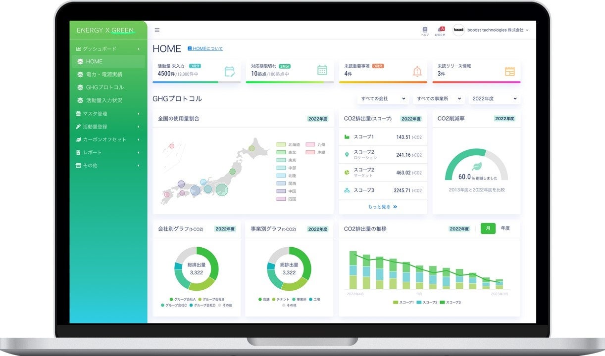 NET-ZEROリーダーが選ぶカーボンマネジメントプラットフォーム『ENERGY X GREEN』( https://green.energyx.jp/ )を展開するClimate Techカンパニーbooost technologies株式会社(東京都品川区、代表取締役:青井宏憲 以下 当社)は、株式会社エディオン(大阪府大阪市、代表取締役会長兼社長執行役員:久保允誉 以下 エディオン)およびフランチャイズ加盟店を含むエディオングループ全社に『ENERGY X GREEN』の提供を開始しました。『ENERGY X GREEN』を活用することにより、エディオングループ全社、全拠点において、事業全体で発生するCO2等排出量の可視化・管理・オフセット・報告等の効率的マネジメントが可能となります。