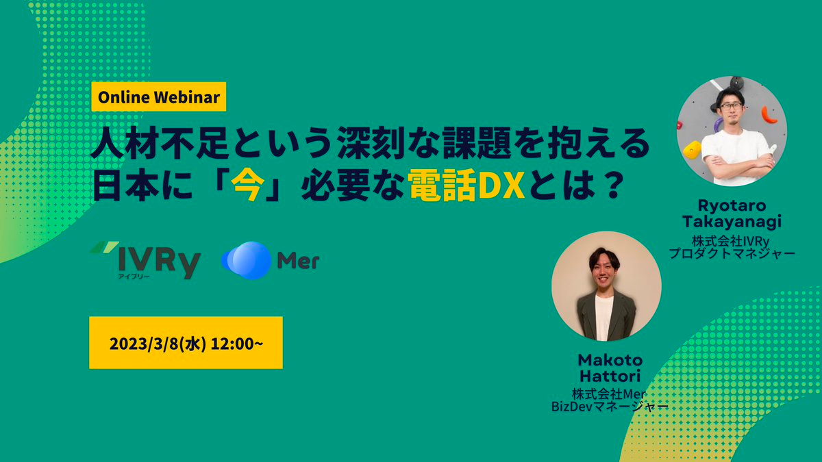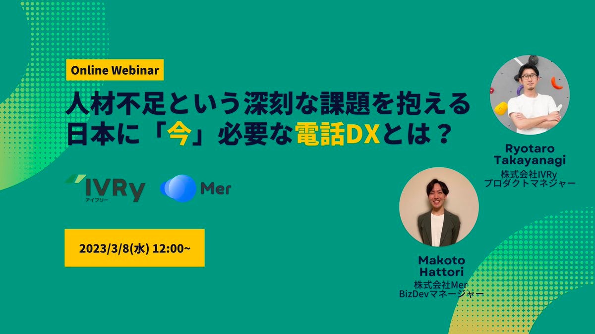 【Mer×IVRy】『人材不足という深刻な課題を抱える日本に「今」必要な電話DXとは?』ウェビナーを3月8日(水)12:00に開催!