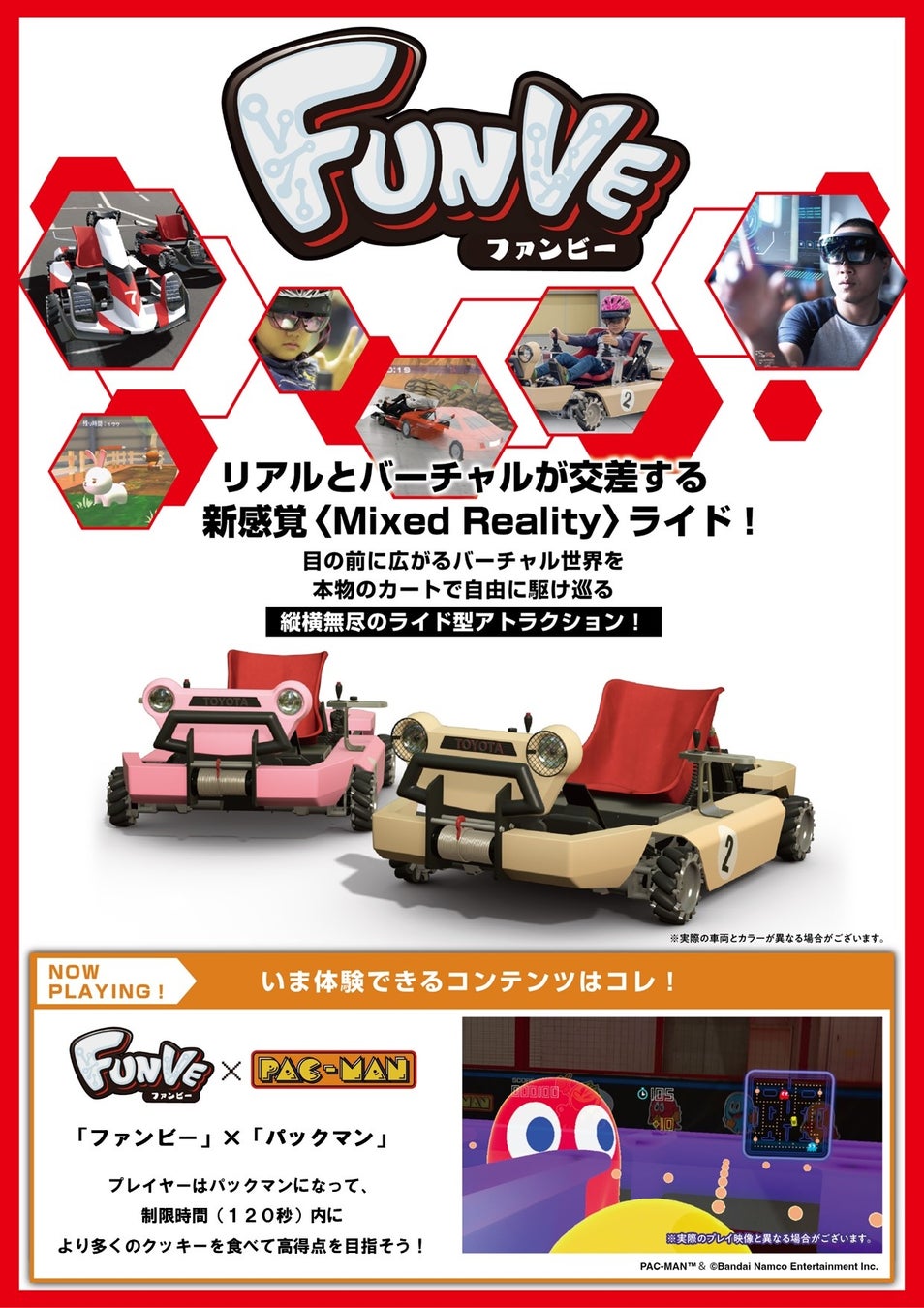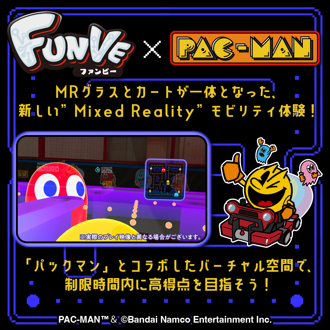 バンダイナムコエンターテインメントの「パックマン」とコラボしたバーチャル空間を、リアルなカートで走行する新しいモビリティ体験をぜひご体感ください。