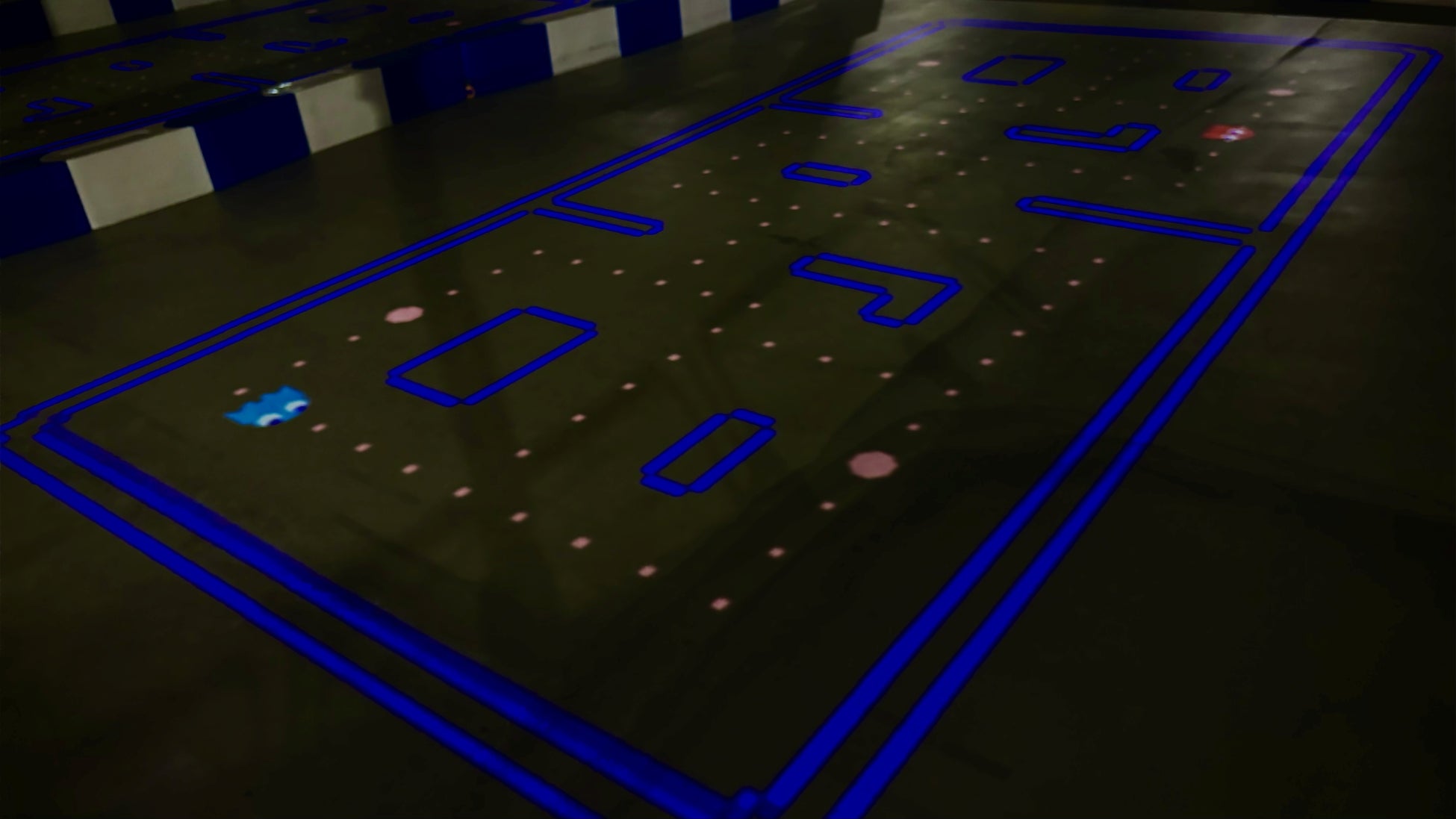 「パックマン」のゲームが、プレイヤーの「MR※グラス」だけでなくコースの「床面」にも映し出されることで、お連れ様や周囲の方々も一緒に楽しむことができます。是非、この機会にご家族やご友人とCITY CIRCUIT TOKYO BAYで『FUNVE』をご体感ください。