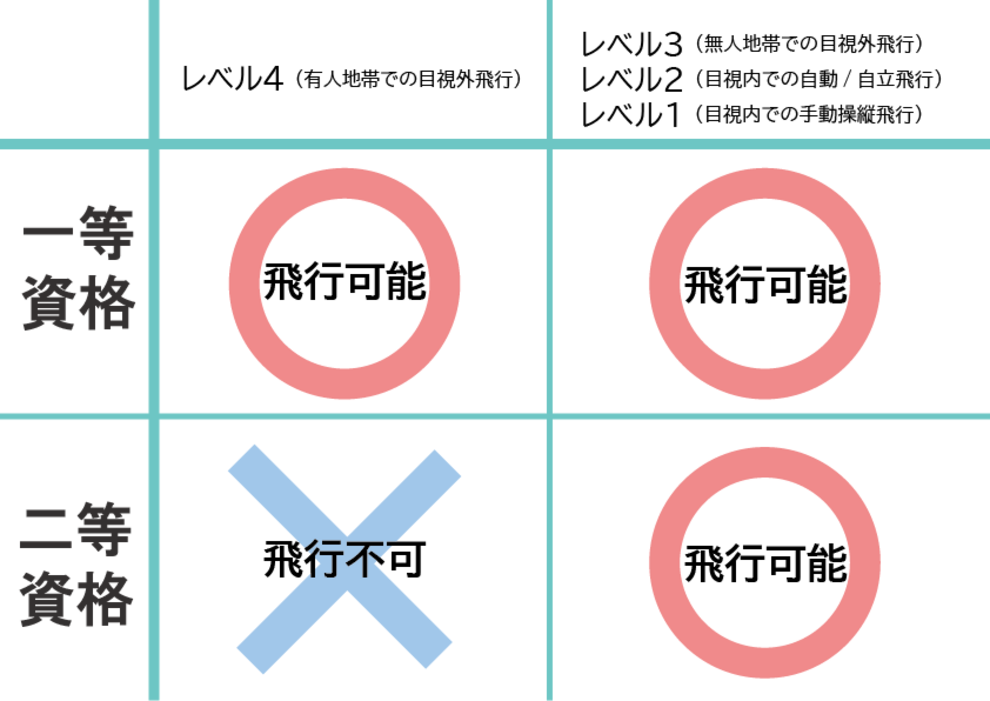 - 一等無人航空機操縦士(一等資格)と二等無人航空機操縦士(二等資格)の違い