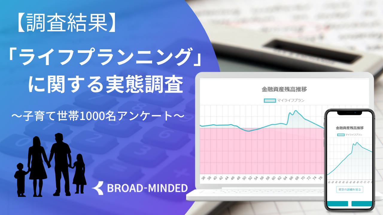 「金融の力を解き放つ」をパーパスに掲げ、保険・証券・住宅ローンと複数の金融商品を横断して1社で取り扱い、人々のライフプラン実現をサポートするブロードマインド株式会社(本社:東京都渋谷区 代表取締役社長:伊藤清 証券コード:7343 以下:当社)は、10月18日「統計の日」にちなみ、子育て世帯の20歳から55歳の男女1,000名に実施した「ライフプランニングに関する実態調査」の結果を公開します。