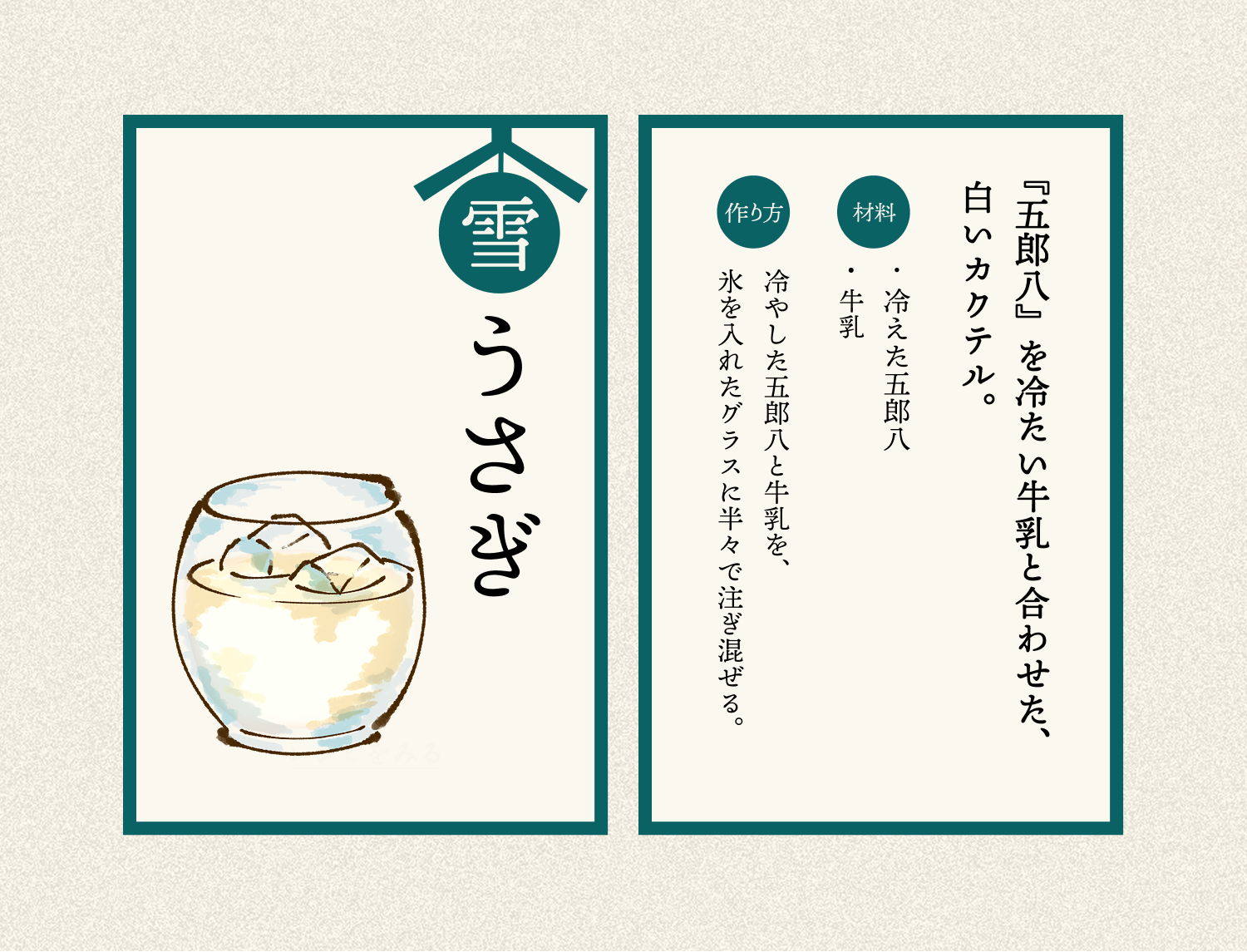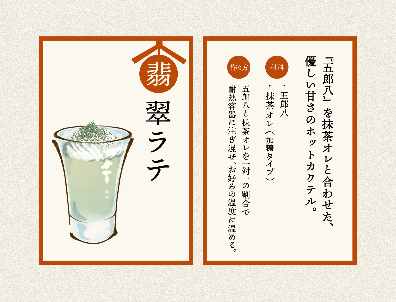 『五郎八』の濃厚な甘みと米の旨みを活かした、4種のオリジナルカクテルからお好きな1杯を無料でお試しいただけます。意外な素材との組み合わせが新しい、まるで“飲む大人のスイーツ”のような味わいです。
