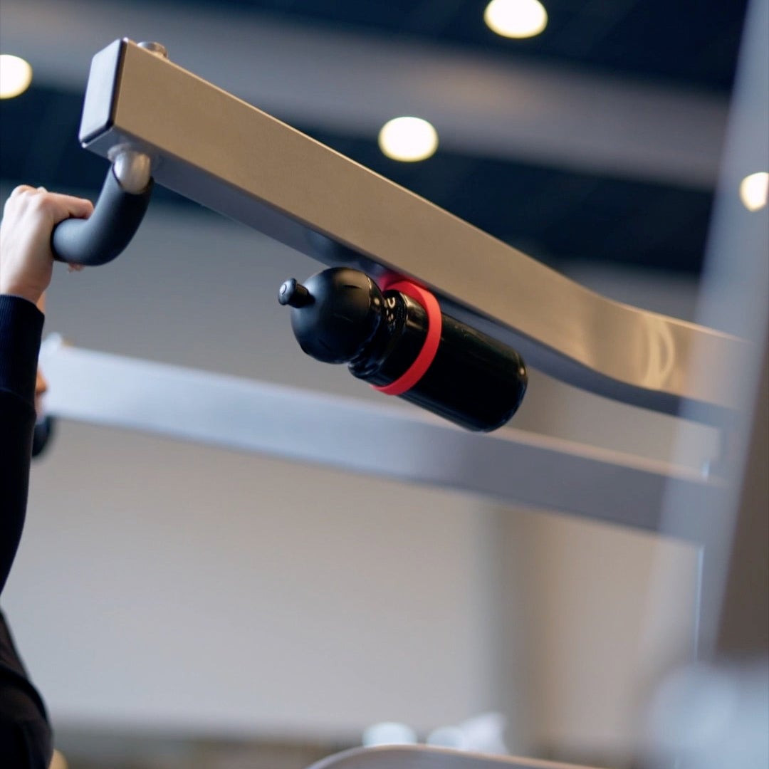 スポーツジムにマイボトルを持ってきたのはいいけど置き場所がない! そんなときも「Gymbutler (ジムバトラー) 」さえあれば大丈夫。ジムマシンの金属部分がドリンクホルダーに早変わりします。