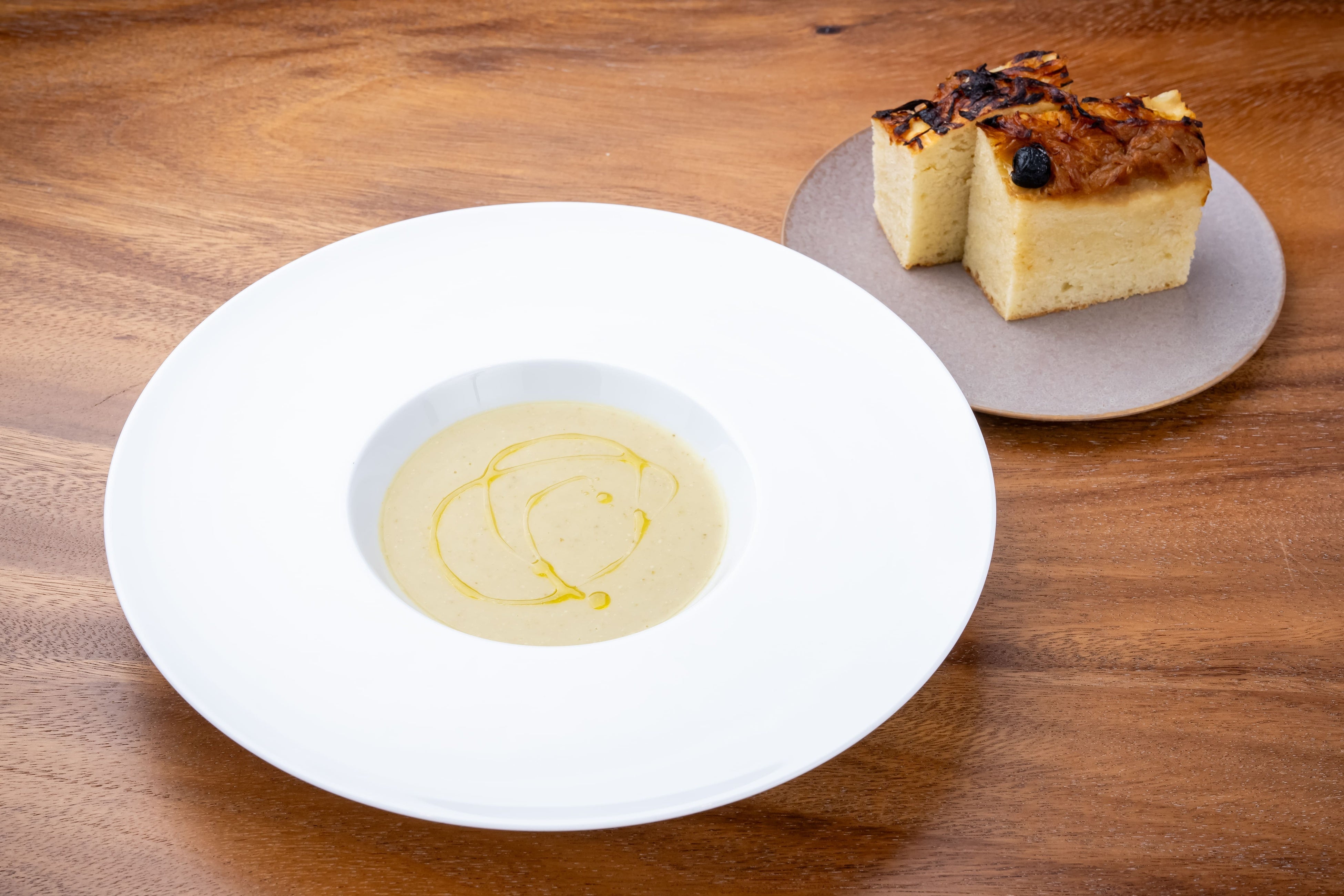 パンはボタニカレストラン自家製の南仏風「ピサラディエール」。玉ねぎに信州味噌を混ぜ合わせパン生地の上にのせ焼き上げています。甘みと香ばしさが同時に味わえる、おすすめの1品です。