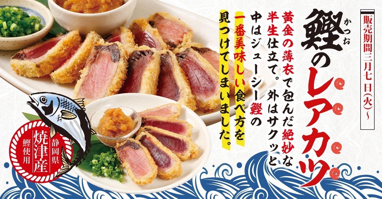 こんなに美味しい食べ方があったとは!鰹のレアカツが新登場!!黄金の薄衣で包んだ半生仕立て。外はサクッと、中はしっとりレア食感!
