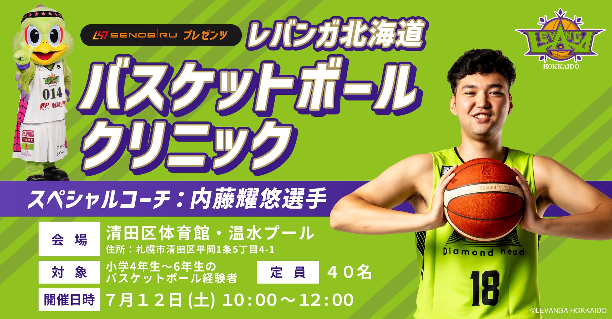 夢を追うジュニアアスリートを応援!レバンガ北海道・内藤耀悠選手によるバスケットボールクリニック開催決定