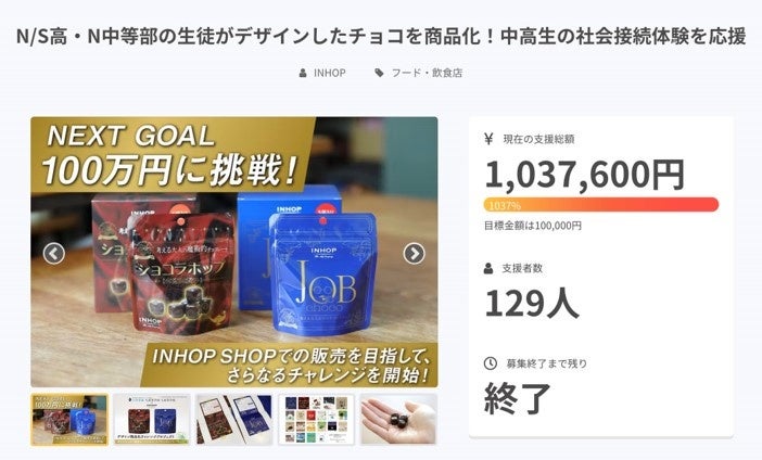 CAMPFIREで目標金額1000%達成!N/S高・N中等部の生徒がパッケージデザインしたチョコを、INHOP SHOPにて6月8日(水)より販売します!