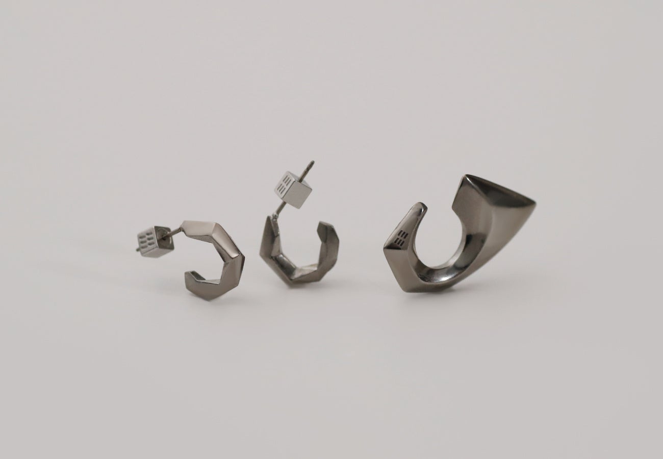チタンの特徴である”軽さ”を活かし、重厚感のあるデザインでも見た目に反したつけ心地の良さを実現。また、チタンは安全性の高い素材でもあるため長時間着けていても人体への負担は限りなく少ないので、日常的に着用できるフープピアスや小振のピアスはワードローブに追加したくなる一品。