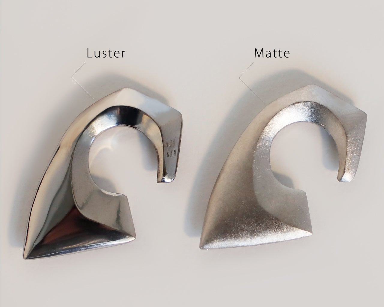 黒味を帯びた控えめな光沢感が美しい「磨き加工」と、艶を抑えた「マット加工」。