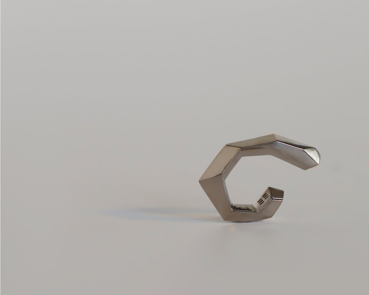 複雑なカットラインが入り混じるフープピアスは、カット面一つ一つのシルエットにこだわっている。