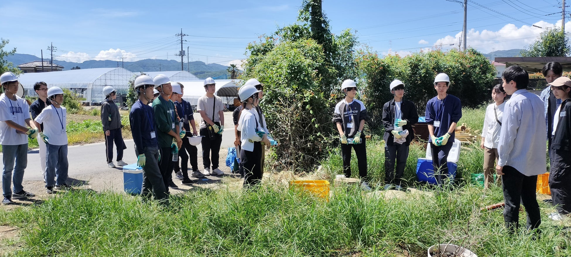 課外活動が実施された日は猛暑日で、外に立っているだけで汗が噴き出すような状況の中、伐採道具を持って竹を切り倒すということがどれほど大変かということを中高生たちは実感していました。